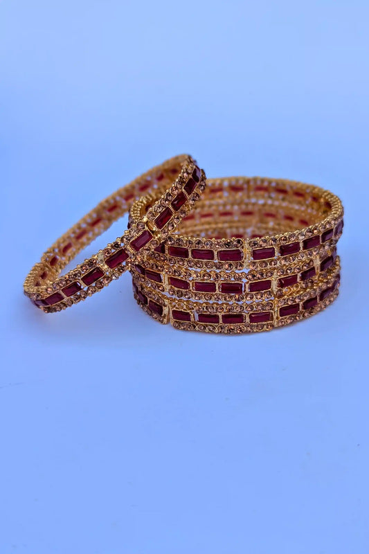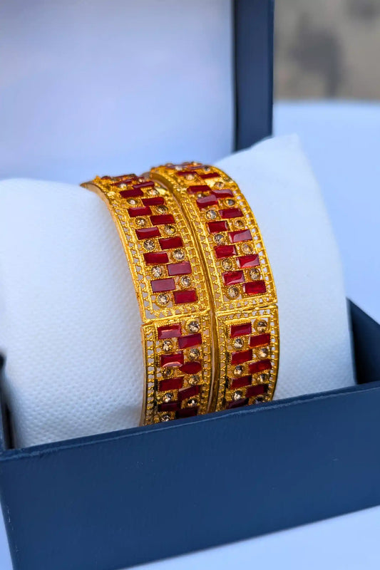 Golden Red Stone Karray – 2 Piece Bangle Set