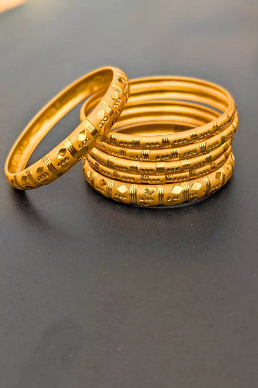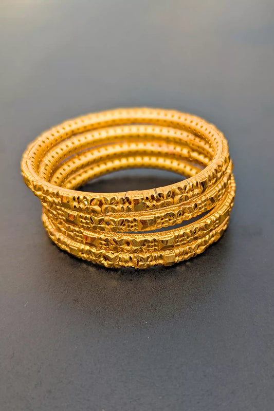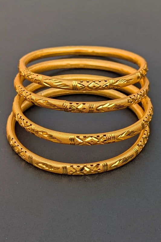 Valentina Jewelry: Classic 4-Piece Golden Bangles Set with Delicate Engraving