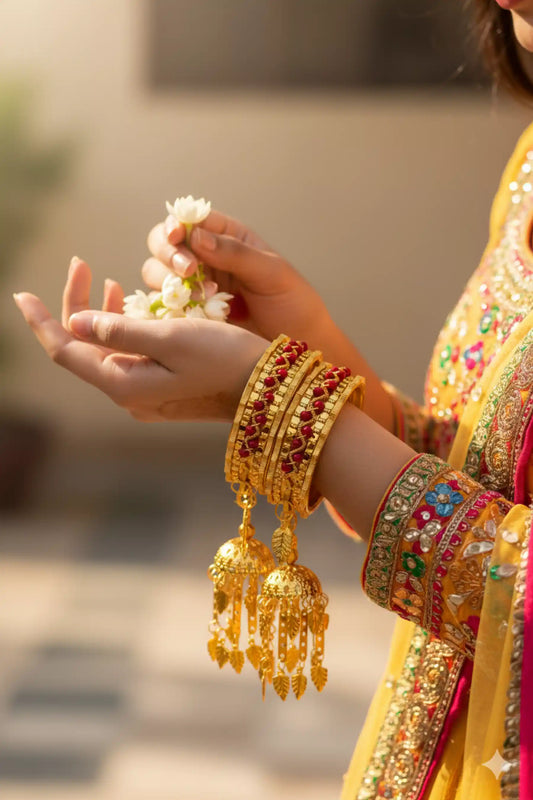 Golden Jhumka Latkan Bangle – traditional Latkan Jhoomer Karra | Valentina Jewelry