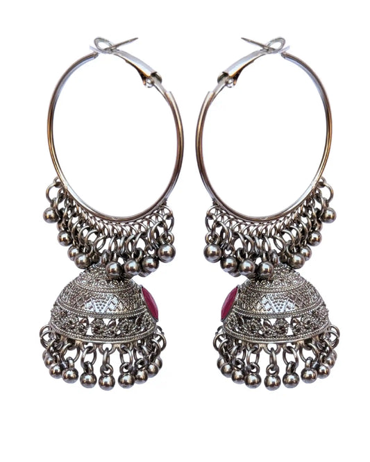Elegant Silver Jhumkay with Stunning Black Stone: Valentina Jewelry