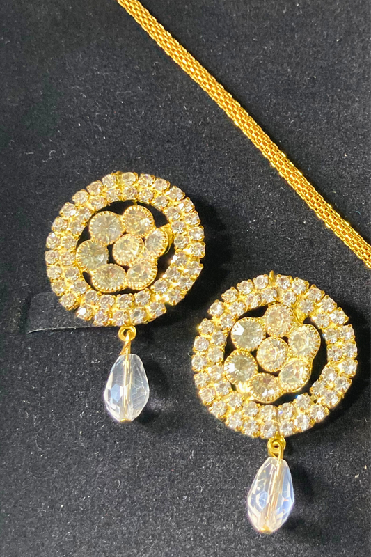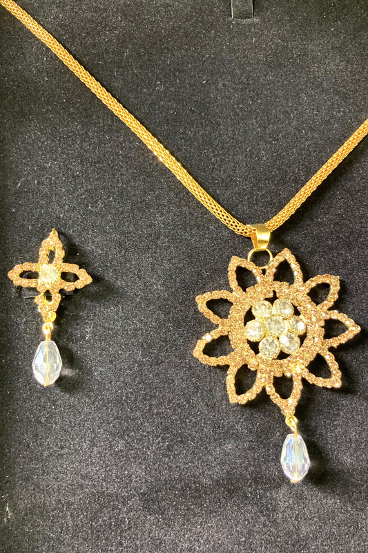 Golden Necklace and Earrings Set with White Stone Accents