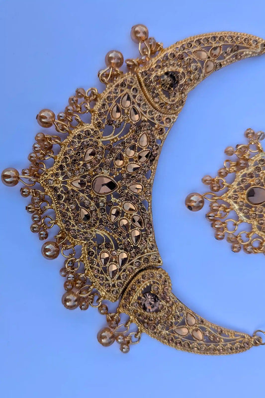 Champagne Stone Necklace Set With Matching Jhumka Earrings