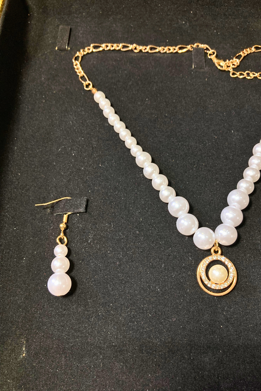 Star Shape Golden White Pearls Necklace and Earrings Set