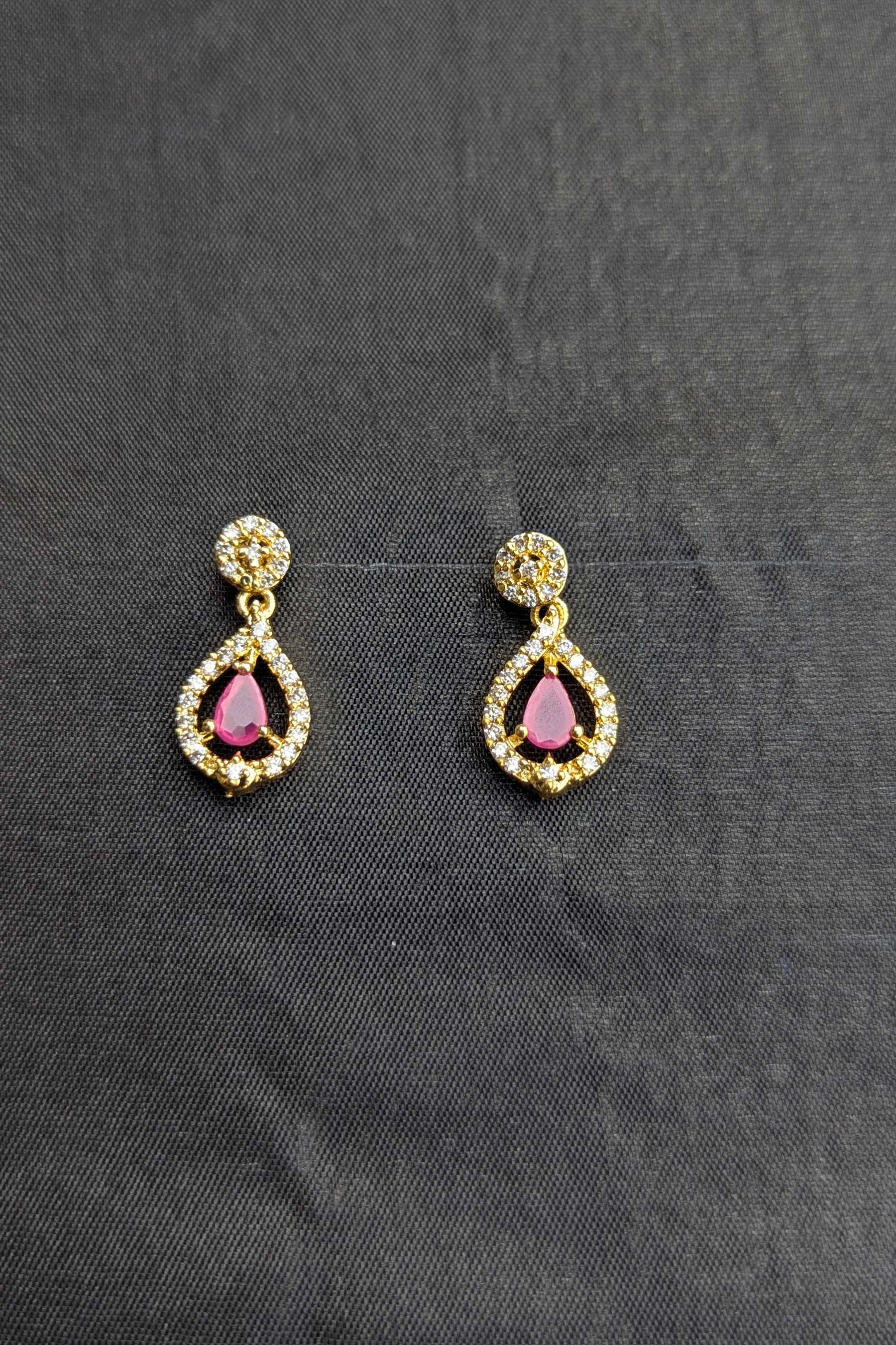 Perfectly poised between classic and contemporary, this set is your go-to for effortless glamour. Pair it with traditional attire or a modern silhouette—its rich ruby tones and radiant sparkle make it a versatile showstopper. Let your hair up in a sleek bun or soft waves to let the brilliance of the earrings shine through.